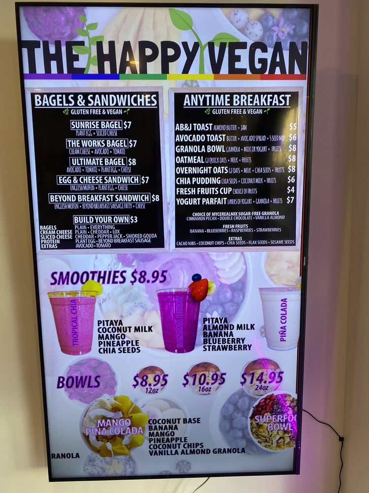 Welcome to The Happy Vegan, a delightful breakfast and brunch spot located at 293 Bayshore Blvd in San Francisco. This hidden gem specializes in wholesome, vegan dishes that are both gluten-free and delicious. Their menu features refreshing Acai Pitaya Bowls, topped with homemade granola and fresh fruits like bananas, strawberries, and organic coconut chips, all priced at just $8.95. Don't miss the fruity Mango Pina Colada Bowl, a tropical delight bursting with flavor.